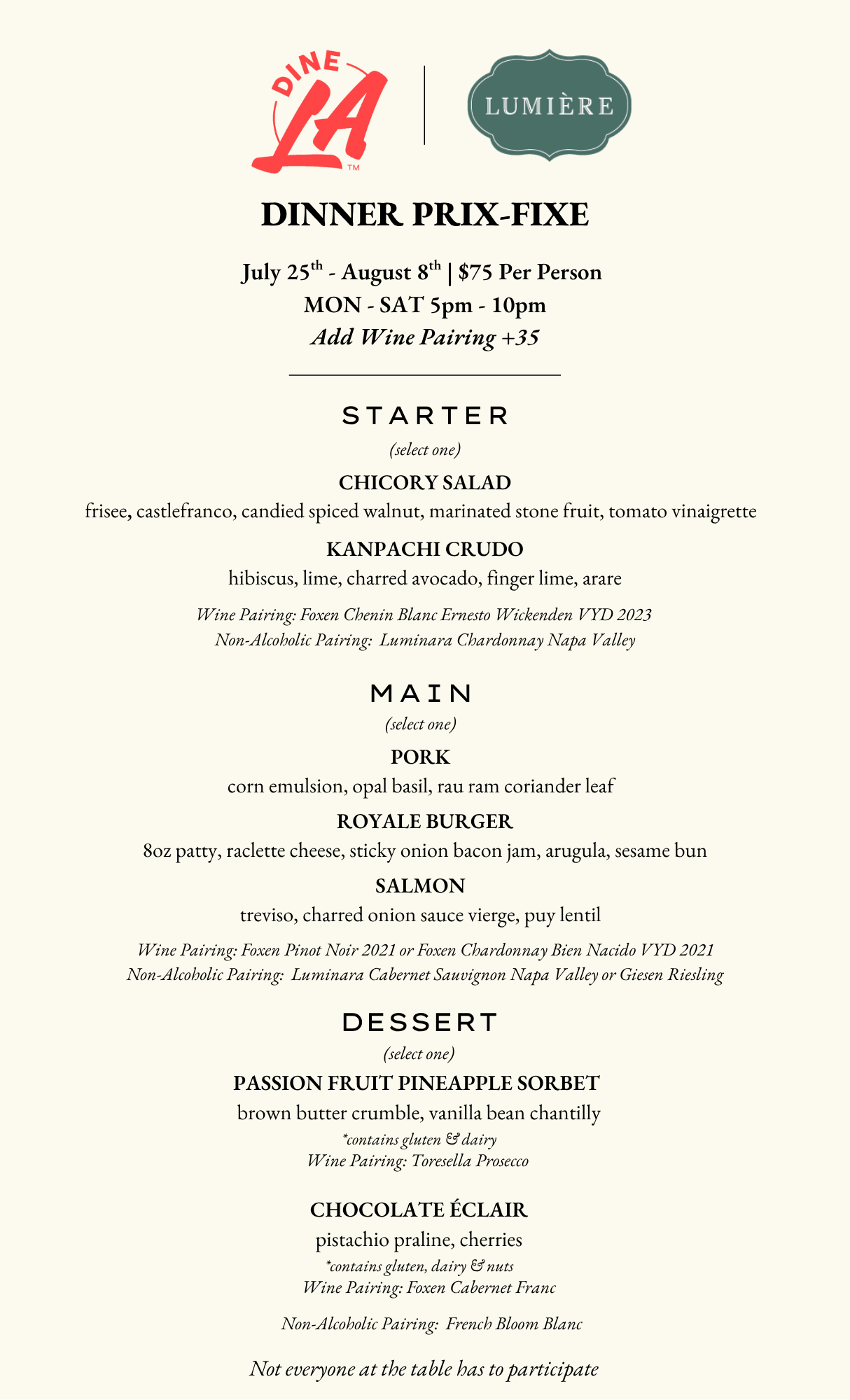 Dine LA Menu